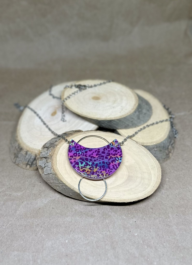 Collier avec chaîne en acier inoxydable, résine, pigment et paillettes, laiton